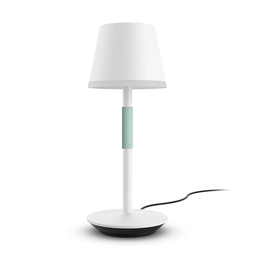 Prijenosna stolna svjetiljka Hue Go White&Color Amb. Bijela je savršen izbor za svakoga tko želi personaliziranu rasvjetu sa širokim rasponom postavki u elegantnom, praktičnom i fleksibilnom dizajnu. Za lakše nošenje svjetiljke uključen je silikonski držač. To je velika prednost jer je svjetiljka bežično dizajnirana tako da je možete nositi sa sobom bilo gdje. Nakon potpunog punjenja, lampa može svijetliti do 48 sati, dajući korisniku slobodu bez premca. Baza za punjenje također je uključena u isporuku.