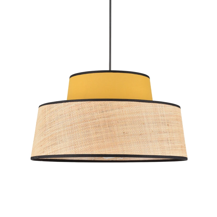 Suspenzijska lampa Mallorca spaja bezvremensku estetiku s prirodnim materijalima poput rafije i pamuka. Harmonijska kombinacija boja gorušičasto žute i prirodnih tonova daje svakoj prostoriji toplu i ugodnu atmosferu. Pažljiva izrada u Europi osigurava visok standard kvalitete i izrade.