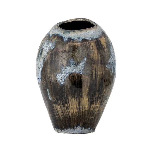 Vaza Senja Brown - Bloomingville jedinstveni je komad kućne opreme koji unosi eleganciju u vaš dom. Ova vaza Bloomingville izrađena je od kamenine i ima prekrasnu smeđu boju s efektom više nijansi. Visok je 31,5 cm i ima promjer od 22,0 cm, što ga čini impresivnim dodatkom svakom dekoru. Vaza je dizajnirana s reaktivnom glazurom i ručno oslikanim potezima kista, stvarajući jedinstvenu varijaciju u boji i detaljima na svakoj vazi. Sjajna površina daje sofisticirani sjaj koji naglašava prirodne promjene boja i teksturu glazure.