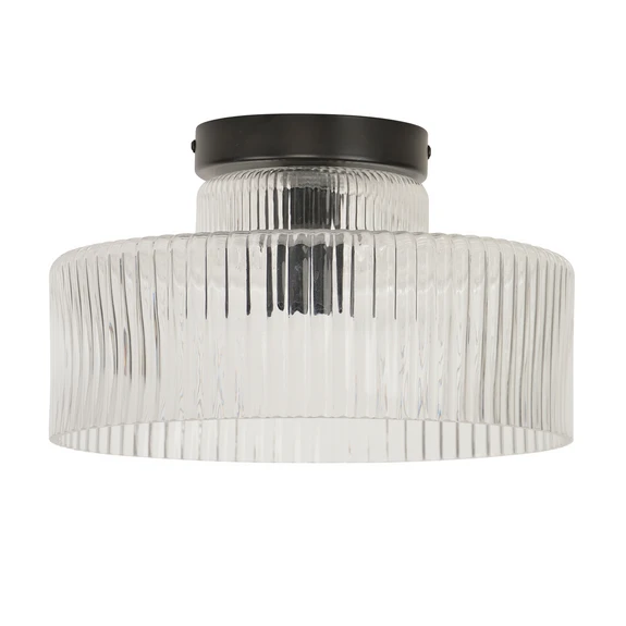 Stropna svjetiljka Lorenzo spaja moderan dizajn s visokokvalitetnim materijalima. Kombinacija prozirnog rebrastog stakla i crnog metala daje modelu elegantnu estetiku koja se besprijekorno uklapa u razne stilove interijera. Njegove čiste linije i skladna shema boja čine ga elegantnim središnjim elementom u svakoj prostoriji.