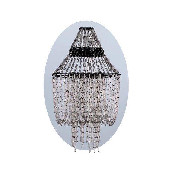 Zidna svjetiljka Lampe C, crna/nehrđajući čelik - DCW, jedinstvena je zidna svjetiljka priznate marke DCWéditions. Ova svjetiljka moderna je interpretacija klasičnog lustera koja u vaš dom unosi čarobnu atmosferu. Bez upotrebe stakla ili kristala, karike od nehrđajućeg čelika 6400 stvaraju očaravajuću igru svjetlosti koja se reflektira i širi poput malih kapljica svjetlosti u prostoriji. Svojim elegantnim dizajnom u crnoj i metalnoj boji, ova zidna svjetiljka savršeno se uklapa u moderne i klasične interijere. Izrađena je od izdržljivog metala, što osigurava dug vijek trajanja i bezvremenski izgled. S dimenzijama 38,0 cm širine, 58,0 cm visine i 16,2 cm dubine, idealna je za stvaranje atmosferske rasvjete u dnevnoj sobi, hodniku ili spavaćoj sobi. Dodajte dašak elegancije i funkcionalnosti svom domu ovom jedinstvenom svjetiljkom..